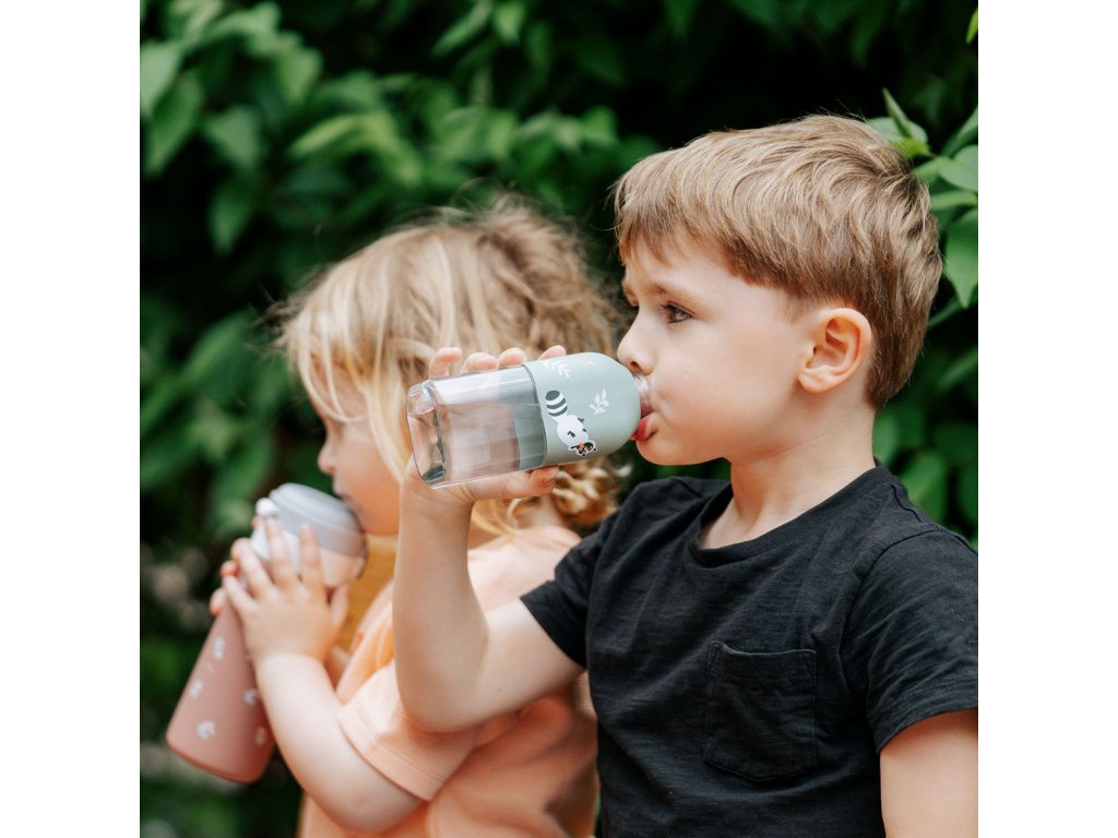 Tritanová fľaša Monbento Positive S s objemom 330 ml v motíve Green Raccoon.