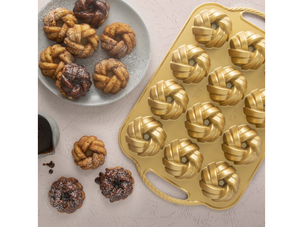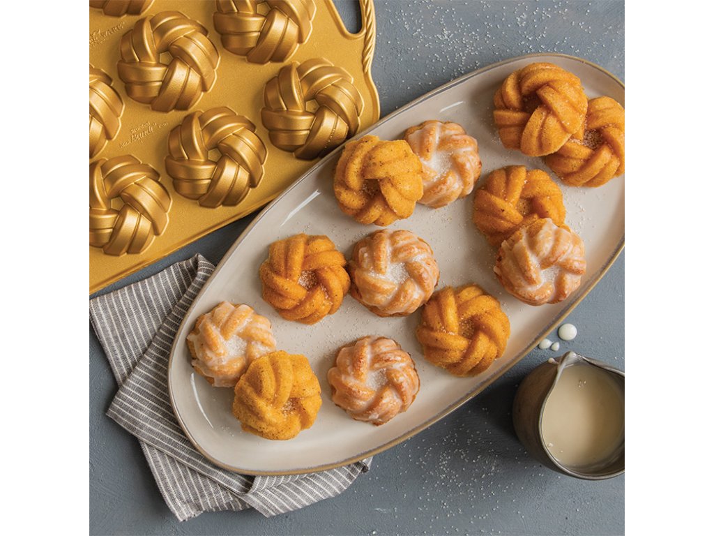 Forma na 12 kusov mini báboviek Braided s objemom 828 ml značky Nordic Ware z liateho hliníku.