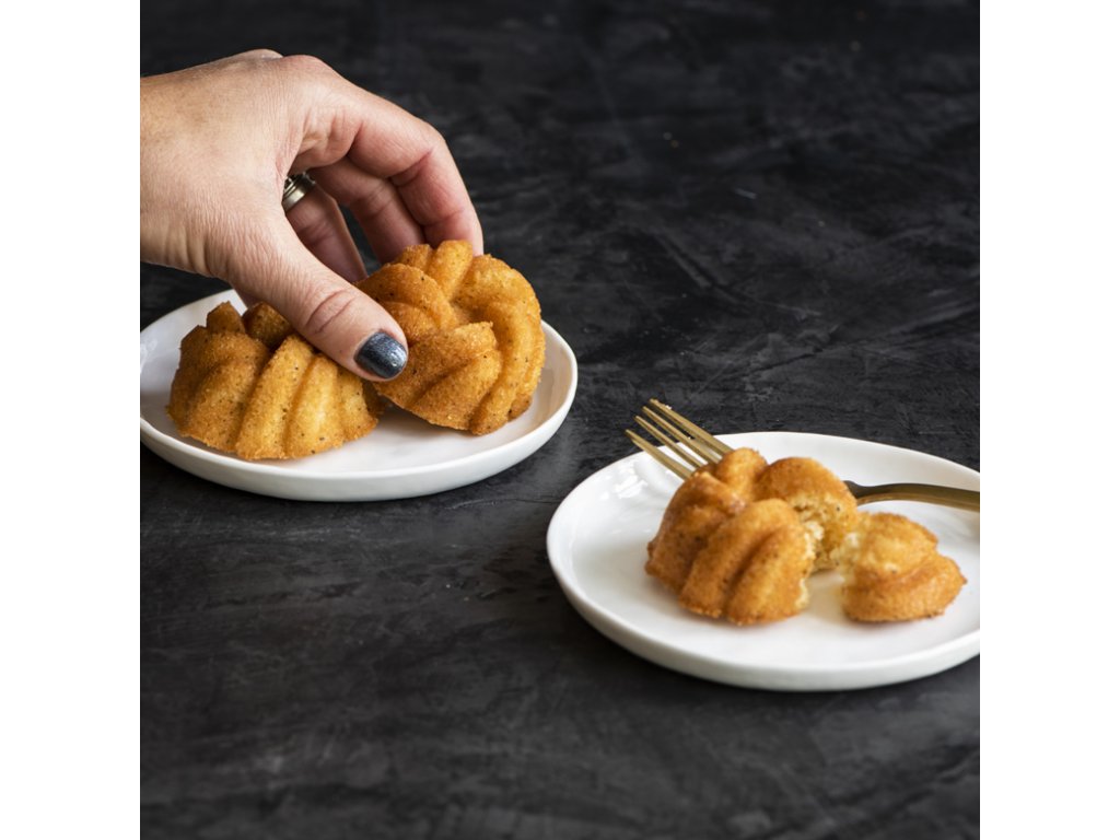 Jedinečná forma na 12 kusov mini báboviek Nordic Ware Braided - prepletaný vzhľad v zlatej farbe. Forma na mini bábovky v tvare prepletaných prameňov ktoré symbolizujú spolupatričnosť - táto forma vznikla k oslave 75. výročia Nordic Ware. Upečte si svoj obľúbený recept do týchto milých mini formičiek, skvelé na oslavy, párty, grilovačky a určite si ich zamilujú aj deti.