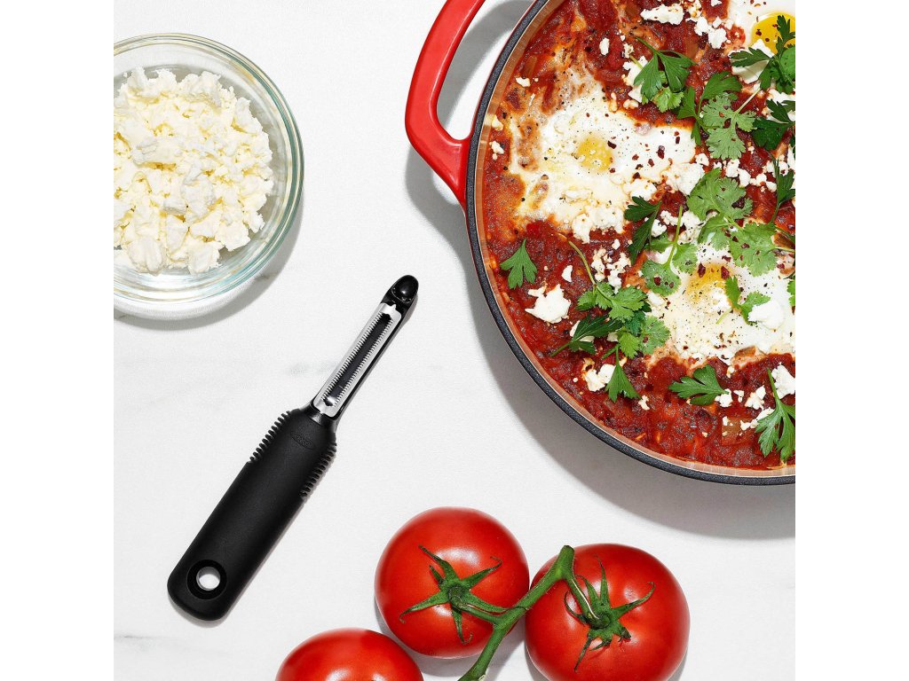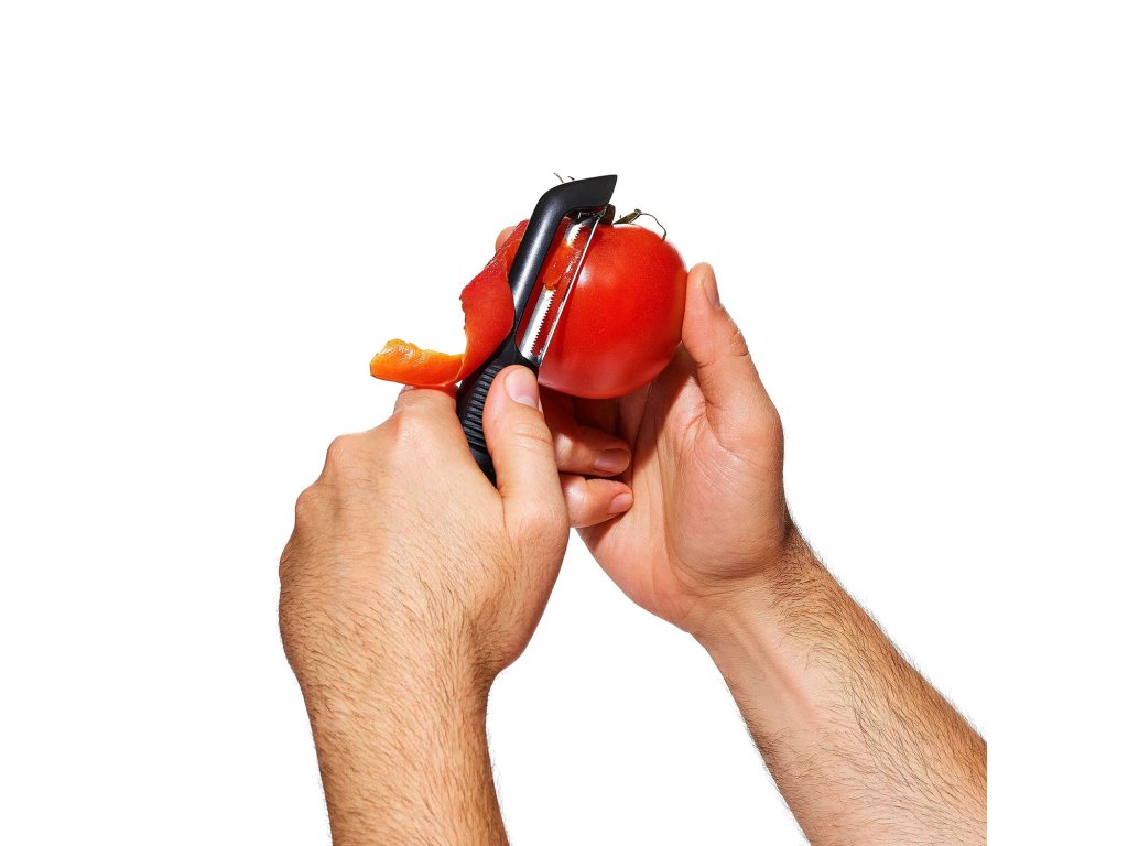Praktická škrabka na zeleninu a ovocie od značky OXO s ktorou ľahko a rýchlo ošúpete všetko čo potrebujete. Škrabka má vrúbkované tvrdé a ostré čepele z japonskej nehrdzavejúcej ocele. Je ideálna na šúpanie mäkšieho ovocia a zeleniny - rajčiny, broskyne, nektarinky, kiwi, marhule...