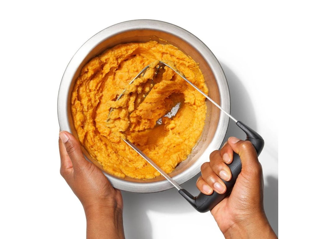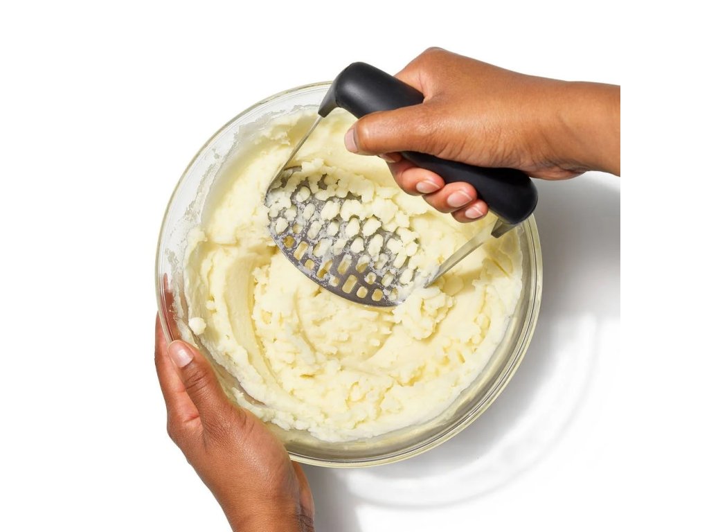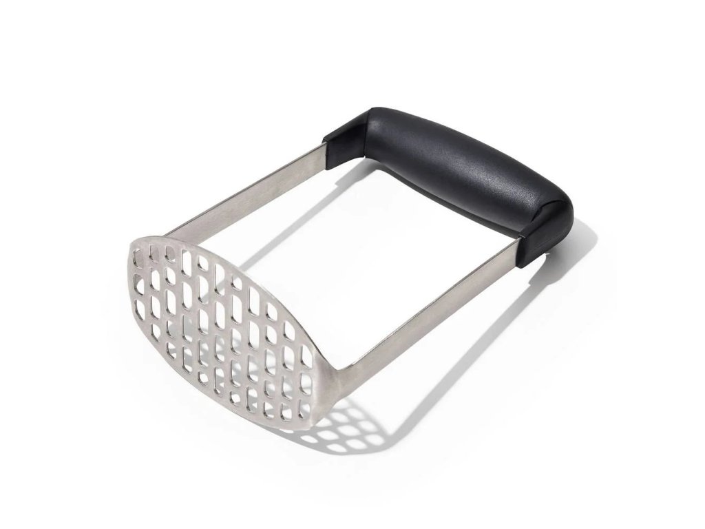 Pučidlo z nehrdzavejúcej ocele s vodorovnou mäkkou a ergonomickou rukoväťou Good Grips od značky OXO.