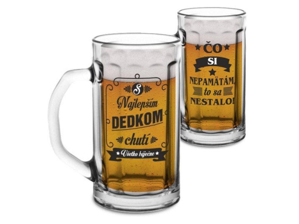 Mohutný sklenený pollitrák na pivo s motívom Čo Si Nepamätám, To Sa Nestalo.