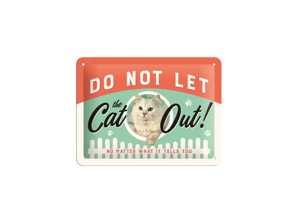 Plechová ceduľa 15x20 cm s 3D prelisom v motíve Do not let the cat out.
