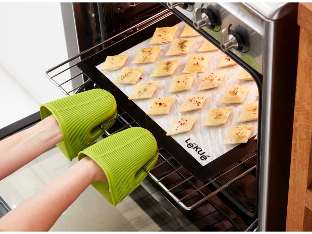 Predstavujeme vám najlepšiu pomocníčku na pečenie! Silikónová podložka na pečenie Lékué s rozmermi 40x60 cm je vďaka silikónu nepriľnavá a vo vnútri je spevnená špeciálnymi sklolaminátovými vláknami. Sklolaminátové vlákna zabezpečujú optimálne vedenie tepla vďaka čomu je pečenie rýchlejšie a efektívnejšie.